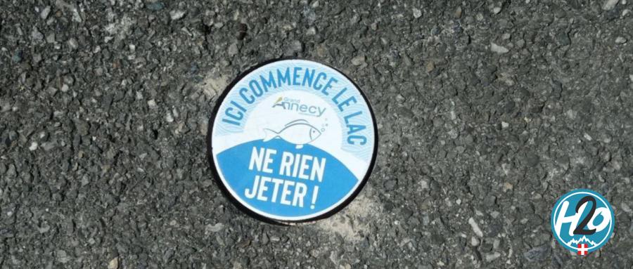 Afin de sensibiliser les habitants à la protection de la flore et de la faune locale, le Grand Annecy a décidé d’apposer devant les grilles d’eaux pluviales un message « Ici commence le Lac ».