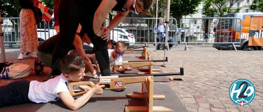 Devant une des animations, le sergent Paul présente le mortier, les obus et la cartographie. “On a des gens qui s’y connaissent et qui connaissent les termes qu’on utilise. Et puis il y a les enfants, qui sont curieux, qui touchent à tout et qui sont contents de pouvoir découvrir notre métier”, observe-t-il. À quelques mètres, Julie, 11 ans, s’est prise au jeu. Et ce, jusque dans son maquillage de “camouflage”, comme elle dit. “On est d’abord allé dans un tank. Et après, il nous a fait faire des exercices. On devait ramper et taper un monsieur. C’était super chouette !”, décrit-elle avec un sourire aux lèvres. Le tank, ou plutôt la cabine installée sur place, a beaucoup intéressé les enfants, mais aussi les adultes. Une manière de faire connaître la compagnie de combat de la Belle-Deux qui fait partie du 13e Bataillon de chasseurs alpins. “Historiquement, c’est une compagnie qui s’appelle la Belle-Deux depuis les combats de la Première Guerre mondiale et de la Seconde Guerre mondiale où elle a été décorée au nom de “la Belle-Deux” “, précise le capitaine Timothée, commandant d’unité de La Belle-Deux. Aujourd’hui, cette compagnie de combat est composée de 170 personnes et est basée à Chambéry.