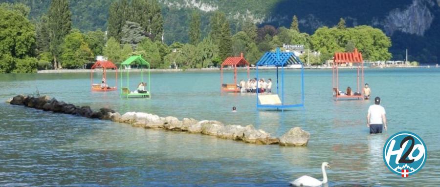 L’œuvre Ciudad Silencio (5 maisonnettes en bois et métal rouges, bleues et vertes) de Pedro Marzorati, installées dans la baie d’Albigny n’ont pas vocation à accueillir des baigneurs pour une séance de bronzage et de farniente. Et d’ailleurs, la promenade d’Albigny n’a pas non plus la vocation de plage. Un récent arrêté municipal interdit d’ailleurs la baignade en dehors des plages d’Albigny et des Marquisats.