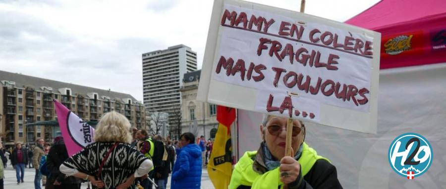 Rouge à lèvre framboise et gilet jaune sur le dos, Josy, elle, n’en est pas à sa première manifestation. Elle lit son panneau : “je suis mamie en colère”. Puis elle nous explique : “moi, je suis en colère, même enragée parce que je trouve que la retraite à 64 ans, ce n’est pas normal ! J’ai des petits enfants, je manifeste pour eux et pour les autres aussi !”. La chambérienne est retraitée depuis 20 ans et se souvient très bien de ses dernières années en tant qu’employée dans un centre commercial. “Vraiment, je ne peux même pas en parler parce que là-bas c’était une jungle. C’était plus que difficile puisque les entreprises ne voulaient plus des vieux donc ils nous poussaient tous vers la sortie”, se souvient-elle. Puis elle conclut : “de toute façon, les patrons ne veulent pas des vieux. Et il faut savoir qu’à 50 ans, on est vieux pour un patron !”. Josy n’a pas écouté Emmanuel Macron ce mercredi 22 mars, et elle assure que l’utilisation du 49.3 par le gouvernement a renforcé sa colère.