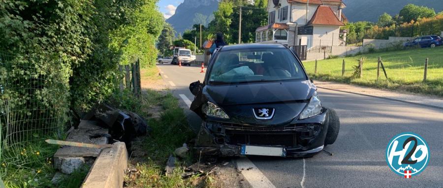 Dans les deux véhicules seuls en cause, deux conducteurs et un passager, tous trois indemnes. Un véritable miracle au vu de la forte cinétique du choc : la Peugeot finissant par arracher un muret en béton, évitant de quelques mètres un plongeon certain dans le lac d’Annecy.