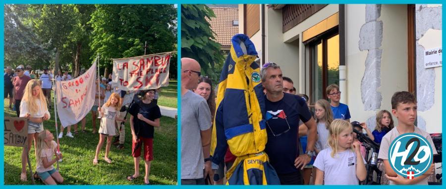 Il est 18h devant la mairie de Faverges-Seythenex lorsque le rassemblement commence à prendre forme. Cloches, klaxons et même une tronçonneuse, les opposants à la fermeture de la station sont décidés à faire du bruit. « Faites du bruit, La Sambuy » scandent-ils.