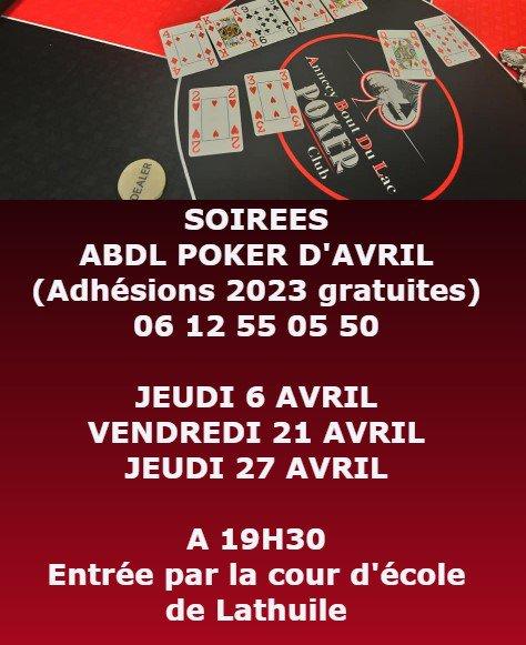 L'ABDL Poker compte sur ses anciens adhérents et les passionnés de Poker ou qui souhaitent découvrir ce sport cérébral. VENEZ NOMBREUX !